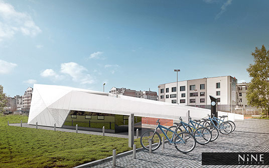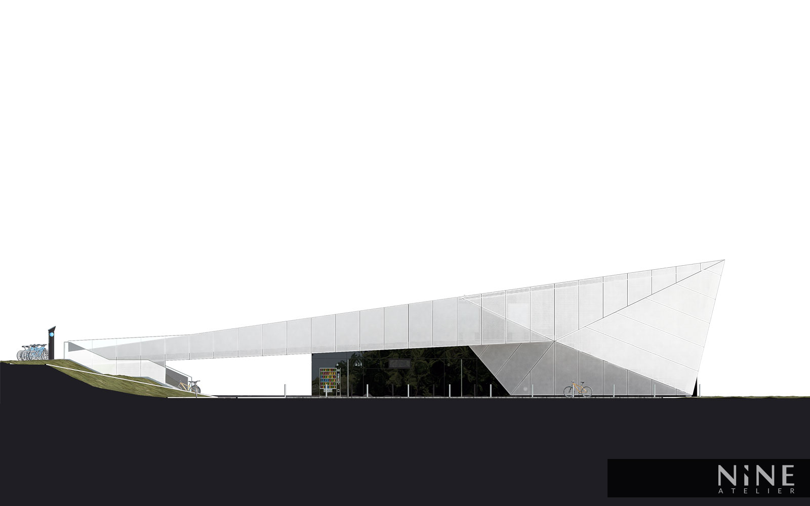 Podstawową funkcją budynku jest funkcja sanitarna- toalet publiczna, która uzupełniona została o wypożyczalnię sprzętu sportowego, widownię z małą sceną przewidzianą jako miejsce do prowadzenia spotkań lub lekcji szkolnych. Uzupełnieniem są miejsca wypoczynku, citylighty, parking dla rowerów miejskich,, urządzenie z przekąskami oraz zadaszenie chroniące turystów przed deszczem.