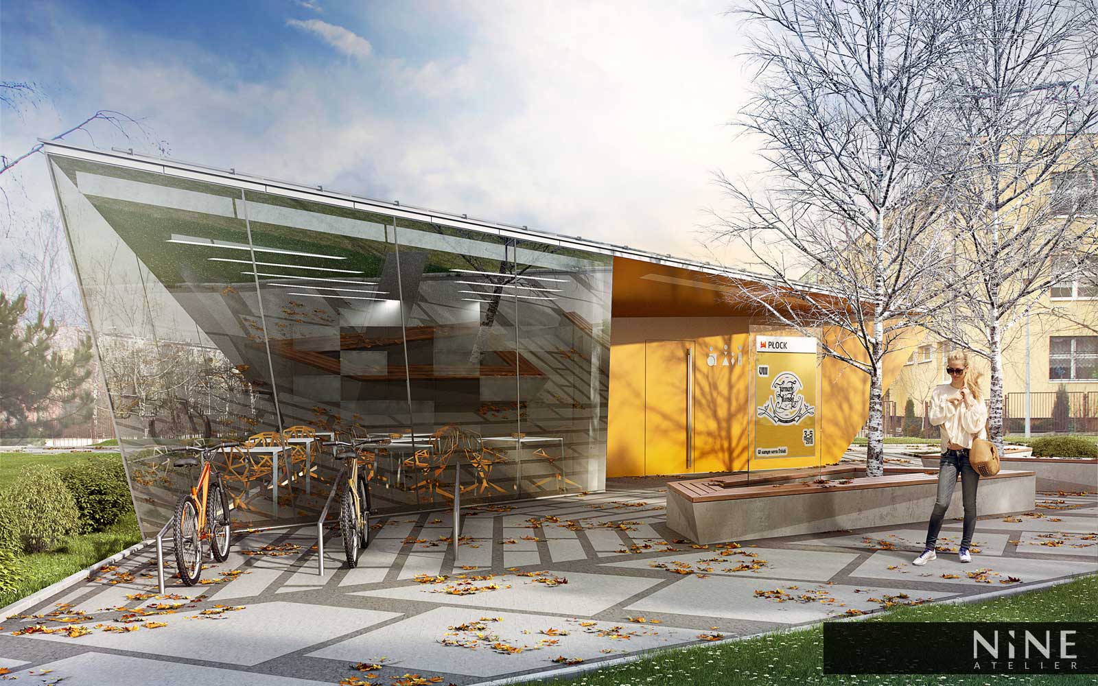 W Płocku przy alei spacerowej im. Antoniego Roguckiego zlokalizowanej na Osiedlu Łukasiewicza zaprojektowaliśmy obiekt w nowoczesnej, ponadczasowej i minimalistycznej formie. Przeznaczenie budynku odpowiada na potrzeby tworzącego się w tej okolicy miejsca rekreacji i odpoczynku dla okolicznych mieszkańców.