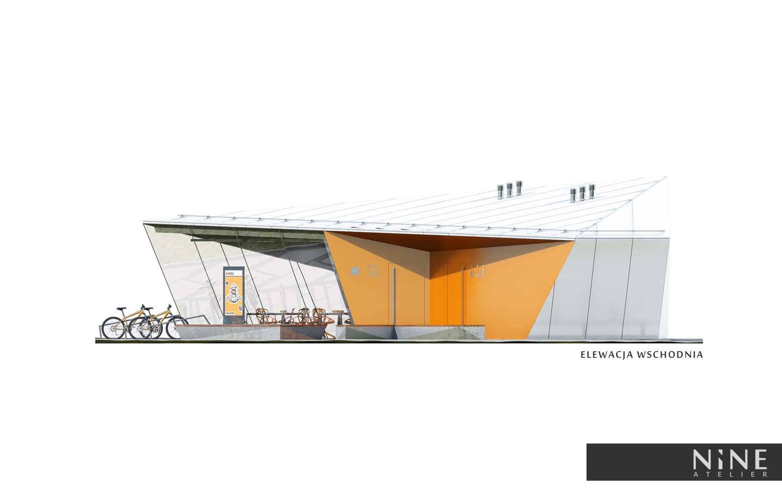 Forma obiektu jest wynikiem analizy otoczenia, kształtu działki, funkcji budynku, występujących w sąsiedztwie materiałów i kolorystyki oraz potrzeby zwiększenia atrakcyjności miejsca i przyciągnięcia mieszkańców do czynnego odpoczynku na świeżym powietrzu.