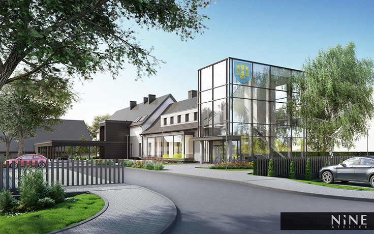 W opracowanym projekcie przebudowy i rozbudowy budynków przewidziano wprowadzenie do ich struktury dodatkowych funkcji takich jak: świetlicy wiejskiej z zapleczem kuchennym i toaletami, archiwum, biblioteki gminnej z zapleczem biurowym, placówki wsparcia dziennego z osobnymi gabinetami do pracy grupowej. Przeprojektowaniu uległ również układ konstrukcyjny i komunikacyjny, którego najistotniejszą zmianą zostało doprojektowanie przeszklonej klatki schodowej z windą.