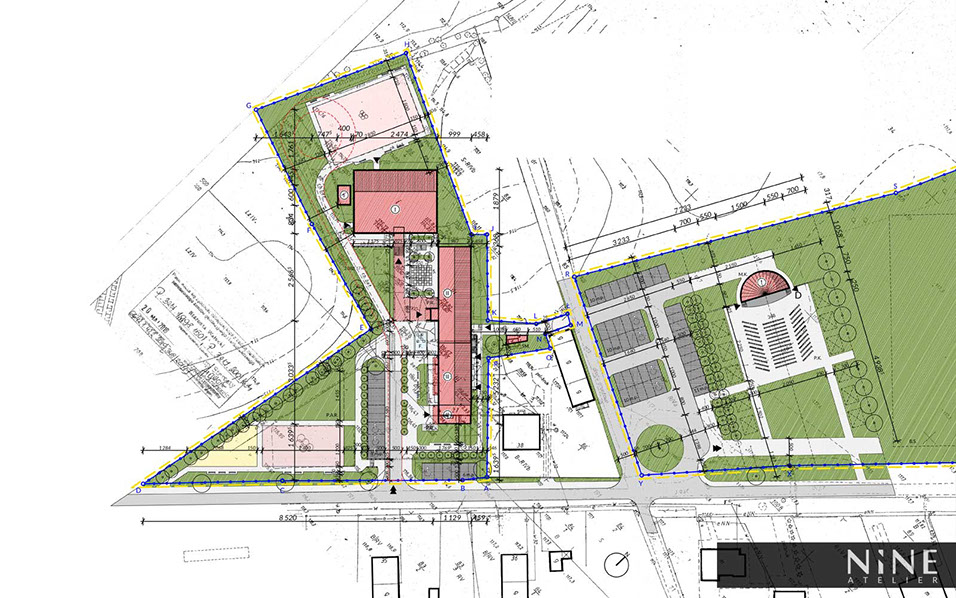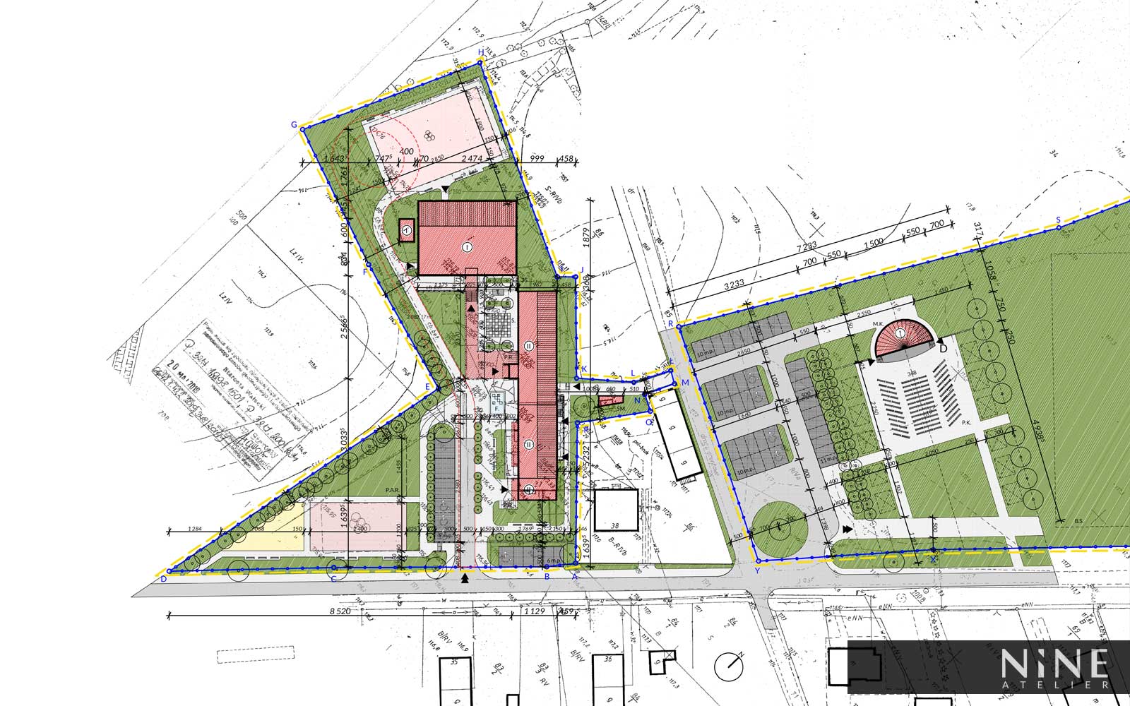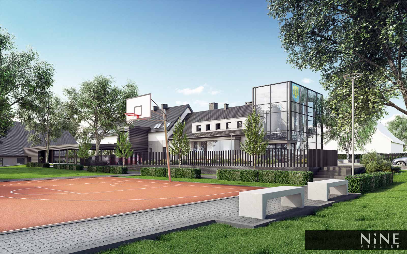 Inwestycja obejmuje również zagospodarowania pobliskiej działki na której zaprojektowano wolno stojącą muszlę koncertową o konstrukcji drewnianej wraz z parkingiem oraz towarzyszącą infrastrukturą przeznaczoną dla lokalnej społeczności.