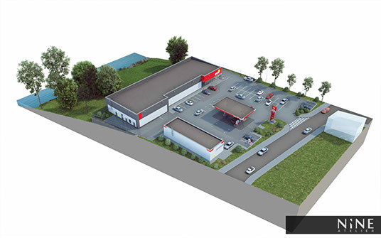 Zaprojektowany budynek handlowo-usługowy wraz ze stacja benzynową zlokalizowane zostały na działce znajdującej się w obrębie dzielnicy Starołęka w Poznaniu.