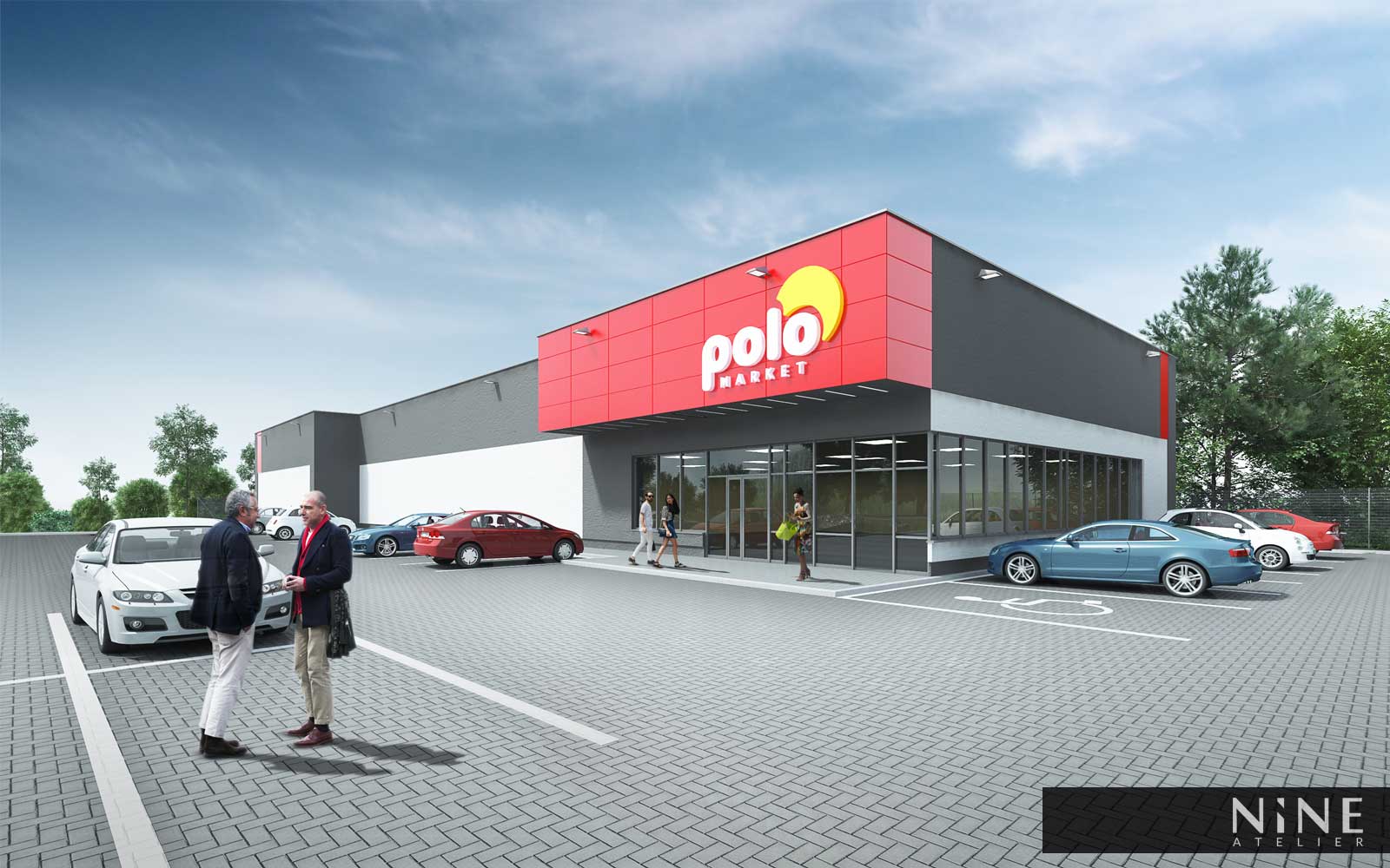 W obiekcie znajduje się przestronny lokal handlowy przeznaczony pod market sieciowy firmy Polo market z zapleczem technicznym, magazynowym oraz socjalnym dla pracowników w którym przewidziano również biura i chłodnie.