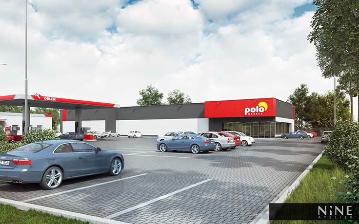 PROJEKT: Budynek handlowo-usługowy POLO Market wraz ze stacją paliw ORLEN przy ulicy Starołęckiej w Poznaniu