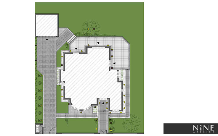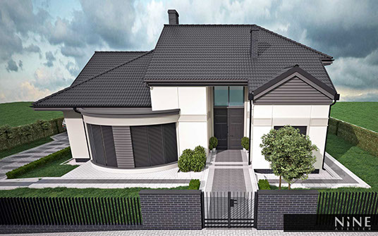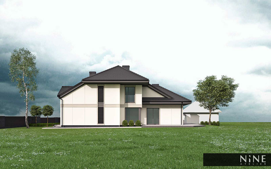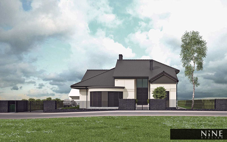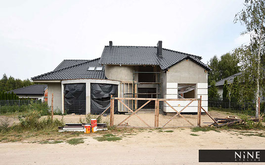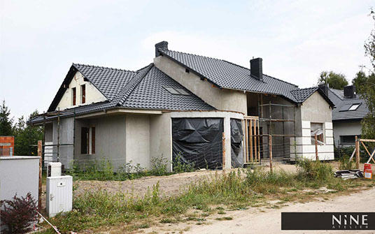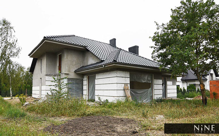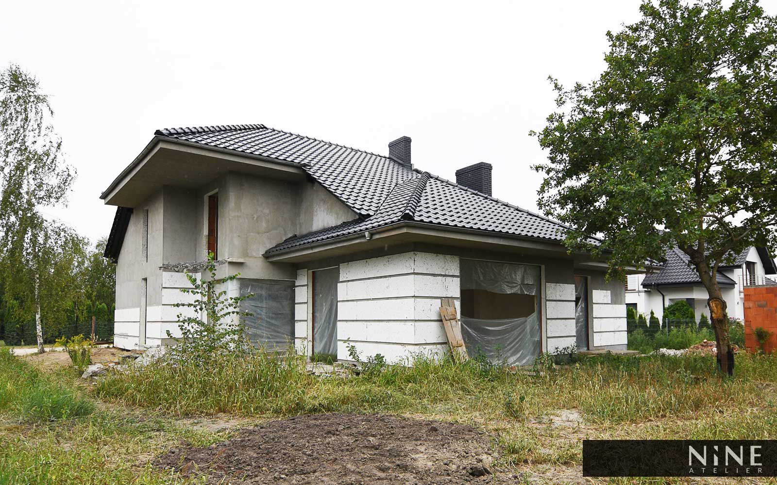Aby spełnić wszystkie te wymagania i wytyczne narzucone przez inwestora, zwykły na pierwszy rzut oka projekt elewacji okazał się niemałym wyzwaniem. Zwłaszcza, że zakupiony przez nowego właściciela dom wybudowany został kilka lat wcześniej i przez ten czas stał w stanie surowym otwartym, a sam projekt na podstawie którego go wybudowano charakteryzuje się brakiem proporcji, konsekwencji i przypadkowością.