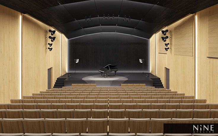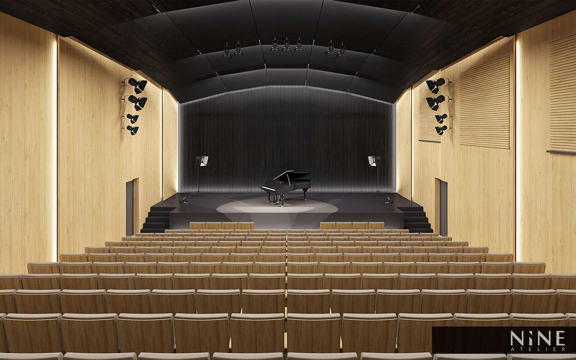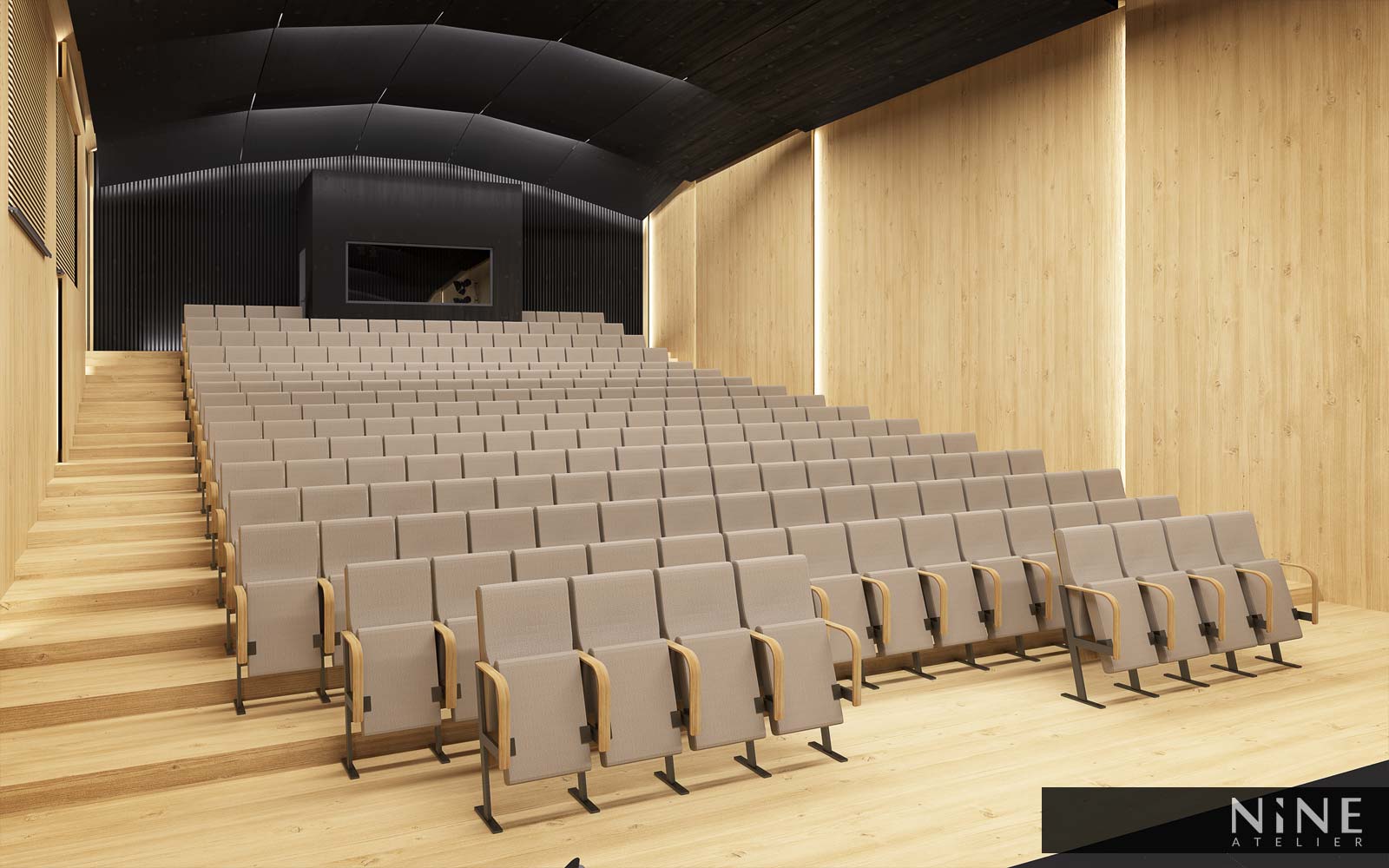 Sala konferencyjno-widowiskowa i jej widownia przewidziana została na ponad dwustu czterdziestu osobową widownię wraz z miejscami przeznaczonymi dla osób z niepełnosprawnością ruchową.